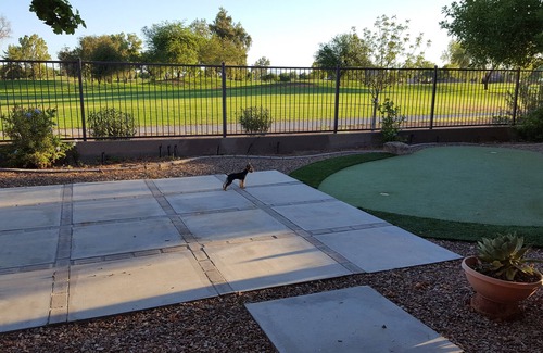 Located in beautiful Queen Creek Arizona, this 2 bedroom home is charming and comfortable. Situated on a championship golf course, it is a place to watch golf from your dining room or patio or get out and play yourself. There are 6 or 7 very fine courses within a 25 minute drive. The town of Queen Creek is small but we have new shopping malls, new theaters and wonderful local restaurants.You can relax and refresh yourself here in the land of the sun.