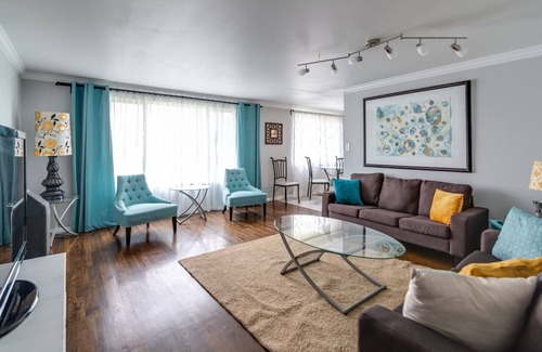 Please keep in mind, this unit is above another basement apartment. Each has their own private access, but the original wooden floors, while beautiful, are a bit creaky and the sound transfers downstairs, so please be respectful of the downstairs guest and observe quiet hours between 10:30 pm and 8:00 am.