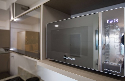 The space is very well equipped with Smart TVs in the bedroom and living room, featuring YouTube, Netflix, and local channels. There's Split air conditioning in the bedroom and living room, 300 Mbps Wi-Fi internet, refrigerator, blender, sandwich maker, grill, iron and ironing board, front-loading washing machine.