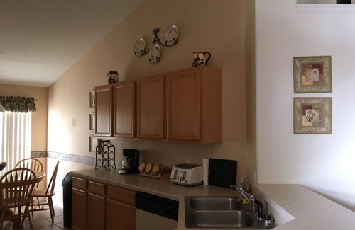 Our villa is decorated, furnished and maintained to high standards. We have a private screened pool (allowing the sunshine in, whilst keeping bugs out) with a shallow 'kiddies' pool attached. This overlooks the lake (fishing permitted). BBQ & patio furniture provided. Internet access and games room with ping pong/table tennis, pool table, and darts. Off street parking for 2 cars. The villa is located on the Eagle Pointe South community, just south of Hwy 192 and within 12-20 minutes drive of all the main attractions. The East and West coastlines are about a 90 minute drive away, as is the Kennedy Space Centre at Cape Canaveral. There are more than 15 golf courses within a 20 minute drive, and an equestrian centre is just a few minutes away.