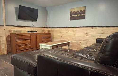 Make some memories at this unique and family-friendly place. Recently remodeled with uniquely utilized bits of trees and vines! This Beautiful apartment Is the lower half of a 2 story ranch, the unit stays wonderfully cool even without A/C. there is a master bedroom with a Full size bed, and a second bedroom with bunk beds and a futon. the couch in the living area also folds open into a bed! This unit is centrally located to many waterfalls and forest hiking trails just minutes away.