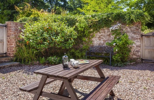 Luccombe Cottage has a gravelled courtyard patio area directly beside the cottage which is enclosed and has a picnic bench.