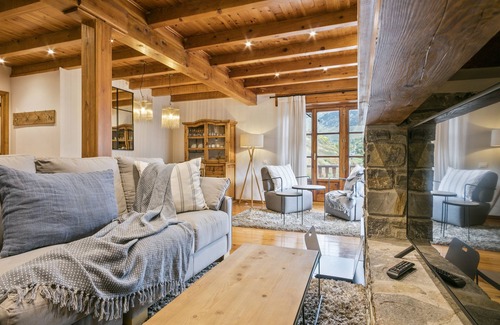 The Orri 2 apartment is distributed on a single floor and can accommodate 4 people - and 2 additional places in its sofa bed -. You will find a living-dining room with large windows with access to a small balcony, fireplace and open kitchen. The sleeping area is distributed in 1 bathroom, 1 double bedroom and a double bedroom with en-suite bathroom.