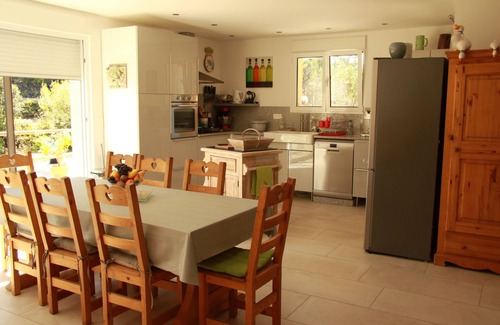 From the living room, you have direct access to the sunny terrace overlooking the garden and the swimming pool. A second covered terrace is also available for you to have lunch in the shade. Lying on a lounge chair, while sipping a glass of chilled rosé, you can enjoy the tranquility and beauty of the surroundings, the sun and the crickets chirping in the background.