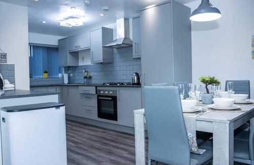 Enjoy quality family time at our spacious, 4-bedroom house just 2.7 miles from Telford Town Center. Conveniently located within a 2-minute walk to the bus stop, 9mins drive to Telford Central Station and 8 minutes drive to M54. Perfect for contractors, families or group of friends. Close to Shopping Malls and eateries (20mins walk/ 9mins drive). Explore nearby attractions like Ironbridge Valley of Invention, Blists Hill Victorian Town (4 mins drive), Tar Tunnel, Coalport China Museum, and more!