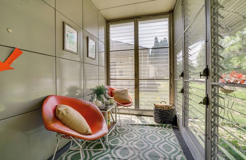 Step into a rare slice of architectural history at this 2-bed, 1-bath Lustron house in Minneapolis’ Tangletown neighborhood. Crafted from porcelain-coated steel and bursting with retro flair, this mid-century modern vacation rental offers walkable access to dining, parks, and the city's vibrant lake culture. Whether you’re biking around Lake Harriet, exploring Minnehaha Falls, or working remotely in style, you'll feel right at home.