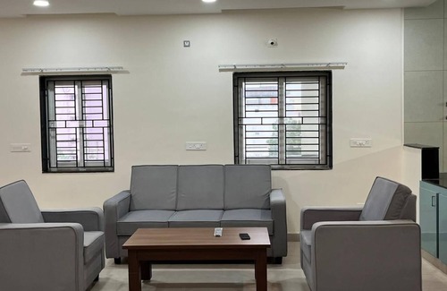 Escape to this enjoyable apartment in picturesque Tirupati. This cozy retreat features 2 adorable bedrooms with queen beds, 2 bathrooms, and a lovely living room with a sofa bed. Guests can stay connected with WiFi and stay cool with AC. Book now and enjoy everything this apartment has to offer.