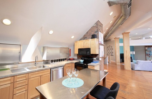 Stunning and spacious. Modern penthouse loft set at the top of an historic 1926 Hyde Park building (3rd floor). Beautifully furnished for an elegant and comfortable getaway experience. 2,450 square feet of flowing, open luxury space with two large private bedrooms & two full bathrooms.