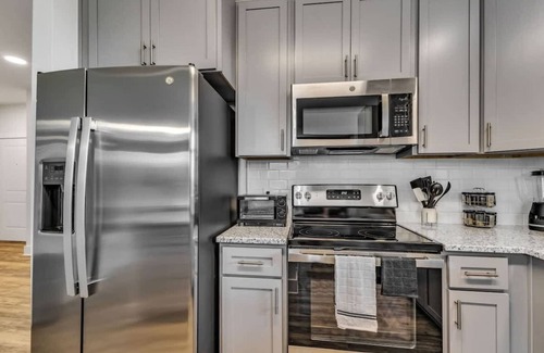 Stay in style in the booming city, famously dubbed "the Startup Capital of the South—Durham! This classy 1182-square-foot (~109-square-meters) 2-bedroom & 2-bathroom apartment features 1 King Bed & 2 Plush Full Beds for your comfort, Lightning Fast Wifi, a Separate Workstation, a Fully Equipped Kitchen, and other Luxury Amenities—specially designed for your longer length stays! Step out to a lively neighborhood, in the heart of Durham Central Park—steps from restaurants, cafés, bars, and shops!