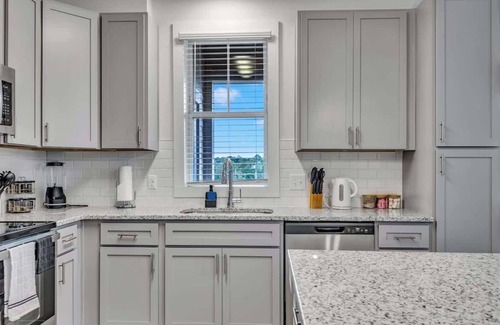 Stay in style in the booming city, famously dubbed "the Startup Capital of the South—Durham! This classy 1182-square-foot (~109-square-meters) 2-bedroom & 2-bathroom apartment features 1 King Bed & 2 Plush Full Beds for your comfort, Lightning Fast Wifi, a Separate Workstation, a Fully Equipped Kitchen, and other Luxury Amenities—specially designed for your longer length stays! Step out to a lively neighborhood, in the heart of Durham Central Park—steps from restaurants, cafés, bars, and shops!