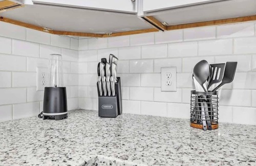 Whether you're preparing a gourmet meal or enjoying a morning coffee, the kitchen is fully stocked with everything you need.