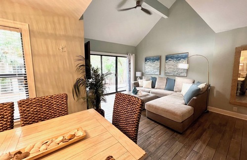 Just a half mile to the beach and close to the Seabrook Island Club, guests love how close this villa is to the acclaimed beach club, golf, the island house, and uncrowded, private beach. This top-floor, luxe villa blends sleek furnishings with coastal relaxation. Freshfields Village, a great spot for shopping, dining, and movies and music under the stars, is a short drive. Kiawah Island is minutes away. Downtown historic Charleston is a scenic 21-mile drive. Historic homes, carriage rides, farmers markets, boat rentals, kayak tours, museums, ghost tours, and fine dining abound in the Lowcountry.