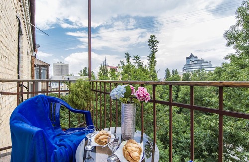 Spacious 2-room apartment (70sq.m) 200 meters from the Zolotye Vorota metro station with an open balcony on a green quiet street. It is a great pleasure to sip your morning coffee accompanied by birdsong. The apartment accommodates 4 people, a separate bedroom with a double bed, a living room with a sofa bed. The center of Kiev is near St. Sophia Cathedral, cafes, restaurants, walking alleys, a huge number of shops and supermarkets. The very center and very easy and convenient to get to anywhere in Kiev. Everything you need for a comfortable stay is in the apartment. Bed, towels, slippers, shampoos, gels, soap, tea, sugar, all utensils for cooking.