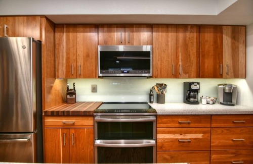 Our resort style Executive Condo will surround you in luxury, with quality features and amenities throughout. This ground level unit has a split floorplan with private dual master bedroom suites and private full bathrooms with luxurious tiled walk-in showers and lighted vanity mirrors. A wrap around Copenhagen leather sofa and lift top coffee table make a great place to relax in front of our 75” big screen TV complete with a PlayStation 5 to keep you entertained. Ceiling fans in each room with remote controls, a Bluetooth speaker, plush blankets and pillows, top-down-bottom-up window shades, and frosted sliding bedroom windows are just a few of the quality touches throughout.