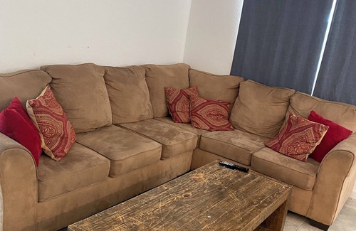 Get ready to relax in this 4-bedroom house in West Phoenix. This gorgeous property features 1 king bed, 1 queen bed, 1 full bed, and 1 futon, perfect for families or groups of friends. With amenities like a washing machine, AC, and heating, guests can feel right at home. The 2 bathrooms with showers ensure convenience for all. Our place is equipped for both long or short stays to make your holiday one to remember.