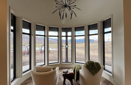 The newly constructed, 7 bath - 7 BR home provides a pool table, shuffleboard, dart board, ping pong table, golf simulator/movie room, and room for relaxing. Outside, guests will enjoy a 7-person hot tub and gas fireplace, with majestic views in all directions.
