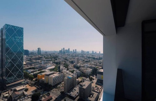 Experience luxury in Tel Aviv's prestigious Davinci Tower. This elegant 2-bedroom apartment offers stunning city and sea views from a private terrace. Enjoy a modern living space, a sleek bathroom with a rain shower, and exclusive access to a rooftop pool. With 24-hour concierge service, and secure parking, every comfort is at your fingertips. Located near trendy shops, restaurants, and markets, it's the perfect blend of relaxation and vibrant city life. Book your stay now!