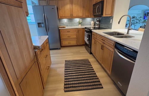 Self-Catering: The unit is being offered as a self-catering accommodation. The unit is stocked with enough basics to get you going for the first night. Should you run out of anything during your stay, you will need to provide your own supplies. Grocery stores and other shops are just a short drive away. The kitchen is fully equipped with everything you might need. Wi-Fi and basic cable are provided at no additional cost. Beds are made up with fresh bed linen and bath towels are provided. The unit is equipped with a washer/dryer should you need to wash any clothes or linens during your stay. Housekeeping services are not provided on a day-to-day basis, so we have provided cleaning equipment to enable you to clean the floor and wipe any surfaces when needed during your stay. At the end of your stay, Please wash and put away your dishes and empty any trash before you leave. A minimum charge of $300 will apply for missing linens and/or housekeeping services that exceed normal use. A minimum charge of $1,000 will apply for smoking in the property.