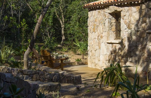 Sheepfold classified 4 stars in local stones and chestnut wood. In the heart of the Maquis, near the beaches and Porto Vecchio, you can enjoy a splendid breathtaking view of the mountains and the Aiguilles de Bavella from the private heated pool and three terraces on a plot of 2000 m2 planted with trees and Mediterranean: arbutus, wild olive trees, holm oaks and cork oaks, lentisk, heather, rosemary and lavender.
