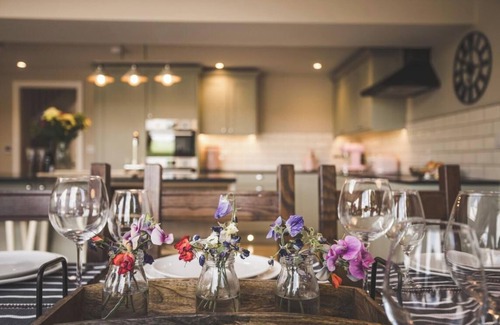 Hen Llwyn is a stunning luxury retreat set within nine acres of private land, offering a perfect blend of modern elegance and countryside charm. With beautifully designed interiors, the home features spacious living areas, underfloor heating, and a cosy wood burner for ultimate comfort. The four flexible bedrooms, all with en-suite bathrooms, provide a restful sanctuary for guests. A fully equipped kitchen and stylish snug with a Smart TV ensure a relaxing stay, while the games room, complete with table tennis, table football, and bifold doors opening to the garden, adds an element of fun.