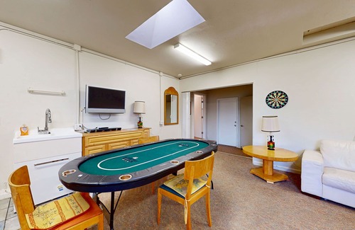 Find the perfect getaway on the Northern California Coast at this spacious Fort Bragg retreat, a 4,000-square-foot home on an acre of land right by the ocean! You'll be treated to a brand new private hot tub, panoramic ocean views from the living space and the deck, and an enormous game room with shuffleboard, foosball, Ping-Pong, and a poker table. The gourmet kitchen also offers every luxury for entertaining, including a built-in wine chiller!