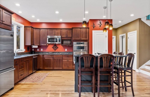 The gourmet kitchen if fully stocked with any utensil and gadget you would need. 2 refrigerators on site so you can stock up on your favorite food and drinks with room to spare. Huge pantry, double wall oven, and island ensure room for all the cooks to be in the kitchen.