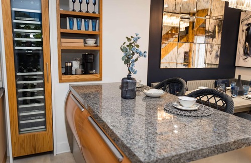 Whether you're cooking a gourmet meal or just whipping up a quick snack, this kitchen has everything you need with access to a private balcony with more stunning views off the dining area.