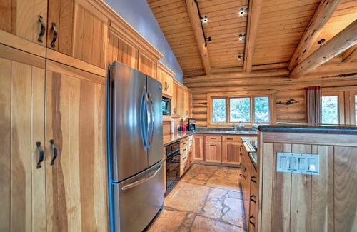 Fall in love with this vacation rental home as soon as you enter the living area and see the vaulted log ceilings, antler chandelier, colorful contemporary painting of the mountains, and massive stone wood-burning fireplace. Browse through the collection of CDs and turn on the Bose stereo system to set the vacation mood.