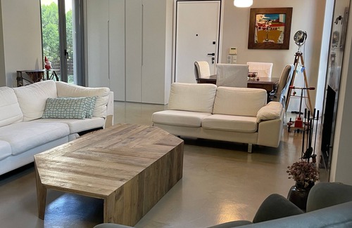 Nestled within Maroussi- the business center of Athens- lies this newly built two-bedroom home. With its clean, minimal design and the open concept floor plans, provides a unique energy and environment ideal for your stay. The house is 5 min walking distance from Sygrou Park, which is almost 240 acres land and includes the only remaining old-growth forest in the greater Athens area.