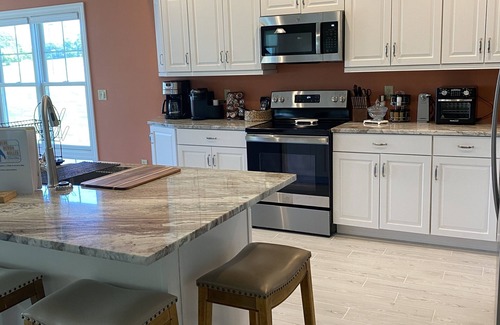 Great space for corporate housing, family functions, retreats, youth groups, out of town wedding guests. Access to the East Fork Little Miami River. Sits on 23 acres over seeing over 100 nests of Blue Heron nesting ground. Bird watching a must. Beautifully decorated and Newly remodeled from top to bottom. Over 2400 Sq. ft. 4 bedrooms which include a King Master Suite and a King Family Bedroom with 3 added bunk beds to sleep a family of 5. 4 bathrooms. Sleeps 15. Parking lot next to the house. Wifi, smart tvs. Basement workout and game room. Sits next to the Mansion House.