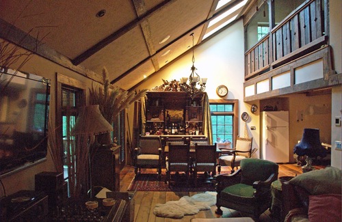 The interior of Voyager Rest is exquisitely finished with antiques and collectables from around the globe. It is truly one of a kind. It includes, a large stone wood-burning fireplace, oak beams, antique hardwood and slate flooring, stone showers, and granite counter-tops fitted with hand-made copper sinks. Two kayaks are available to guests; one at each lake (Please see orientation).