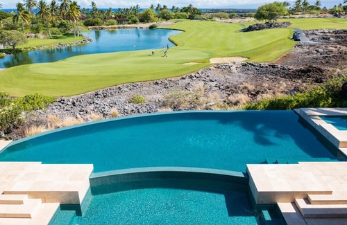 Pohinahina Place is your private resort retreat. With an incredible view of the Pacific Ocean and overlooking the 5th green of the Hualalai Golf Course, this property is located right in the middle of Hualalai Four Seasons Resort. This beautiful oasis is nestled on a cul-de-sac, has a private pool and spa and is a luxurious, serene getaway perfect for all types of groups including families.