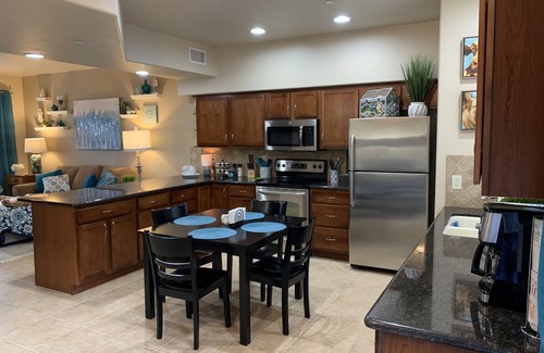 This stunning townhouse has two beautifully decorated master suites each with their own large screen tv, private bathroom, and private balconies where you can relax and enjoy the red rocks of Sedona.