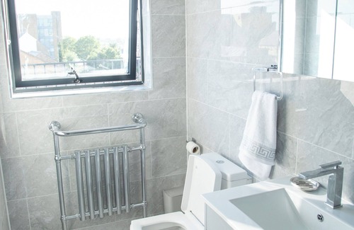 Luxurious Two Bedroom Penthouse with Canary Wharf Views is located in Island Gardens. Luxurious Two Bedroom Penthouse with Canary Wharf Views provides accommodation, featuring Laundry, TV, Bedding/Linens, among other amenities. This Apartment features Laundry, TV, Bedding/Linens, to make your stay a comfortable one.