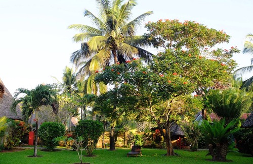 If you are searching for a holiday spot, away from hotel complexes with hundred tourists, dozens of chairs close to each other, noisy strange children in the pool and jam-packed crowd at the evening buffet, then you are at the right place here. Your 360m2 villa has 2 bedrooms with double beds, 2 bathrooms, kitchen, balcony, large patio, huge gallery with extra double bed, a swimming pool and a new Jacuzzi. The villa is on a 2200m2 large, fantastic, well-maintained plot. Eunice, the house maid takes care of the daily cleaning and your personal cook Riziki is ready to treat you with culinary delights. Everything is inclusive in the price, of course even safari, our gardener and the spirits of the house. The kitchen has a separate entrance for the personnel. The top floor with gallery has a large living room with an additional double bed, a 40' Samsung flat screen satellite TV (even ZDF), radio, DVD stereo system. The high Makuti roof ensures a pleasant climate in the room with the oversized gable openings. Additional cooling is provided in all bedrooms by quiet fans. Electricity is set-up as per European standard (240V) (enough adapters available).