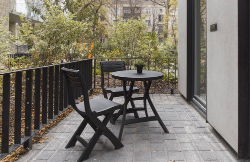It is a luxurious one-bedroom ground floor apartment with plenty of light and space created by floor to ceiling windows and modern decor. It has a spacious terrace. It is very secure and monitored by the hilton security cameras, with an electronic gate to access the apprartments. It is located in a tranquil part of the City centre, although is only within short walking distance from the main Vilnius city landmarks.