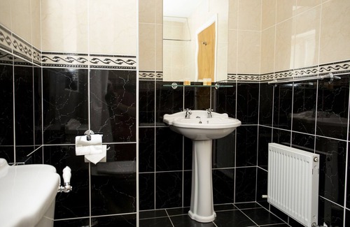Set in mature gardens, Donegal Manor features expansive lawns for outdoor games and a south-facing patio for alfresco dining. The spacious open-plan living area boasts comfy leather sofas and a cozy open fire, perfect for relaxing after a day of exploring. A drying room is available for walkers and cyclists.