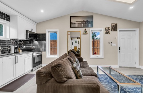 Labelle Lodge welcomes you to this bright home with 2 spacious bedrooms and a living area with high ceilings and tons of natural light. Nestled amongst majestic trees, the serene getaway is just 7 minutes away from the US border. Conveniently located near EC Row, you’re a skip away from the Riverside and the entertainment district. Enjoy the comfort of high speed internet and two smart TVs with all your streaming services and an outdoor dining area with a BBQ. We look forward to hosting you!
