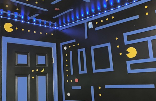 * Pac-Man Bedroom: Step into nostalgia with a high-end Pac-Man-themed room featuring two beds, a flat-screen TV, a Google Home system, and a luxury design. Perfect for gamers and fans alike!