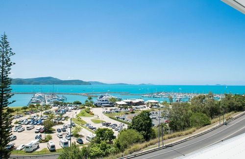 Enormous deck with views across Coral Sea Marina and Whitsunday Islands