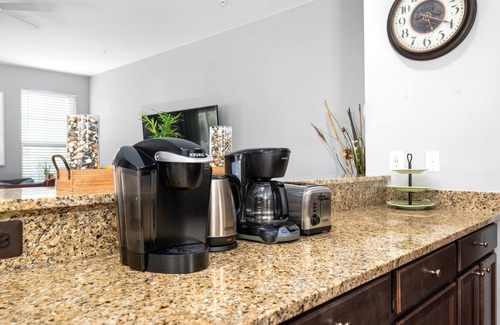 The entire interior of this gorgeous townhouse has just been painted, deep cleaned, and ready for you! It is completely furnished, including a large, fully equipped kitchen with granite countertops and stainless-steel appliances. Hardwood throughout the house; Flat screen TV and ceiling fan in all bedrooms; Cable TV and free WiFi; Large front and rear decks with lounge chairs and tables, community pool, fitness center, and plenty of parking spaces! First floor: Bedroom Queen size bed and full bathroom. Second floor: queen sleep sofa, 1/2 bathroom, fully equipped kitchen with 3 bar stools and 6 seating dining area. Third Floor: Master bedroom -King-size bed, walk-in closet, and full bathroom. 2nd bedroom -(2) singles bed, 3rd bedroom - queen bed. Full bathroom and laundry closet in the hallway. The garage-turned game room includes a foosball, dart board, ping pong table, and seating area with a flat-screen TV.