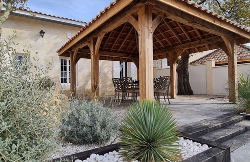 Luxury 5* cottage with own private heated pool - Sleep 4 is located in Villegouge. Luxury 5* cottage with own private heated pool - Sleep 4 provides accommodation, featuring Security/Safety, Wellness Facilities, Fireplace/Heating, among other amenities. This Cottage features Security/Safety, Wellness Facilities, Fireplace/Heating, to make your stay a comfortable one.