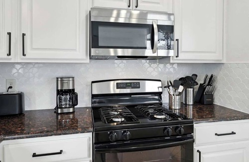 The fully equipped kitchen features everything you need to cook and entertain — including pots, pans, silverware, utensils, plates, and more. Enjoy meals at the large dining table, kitchen bar, or cozy breakfast nook.