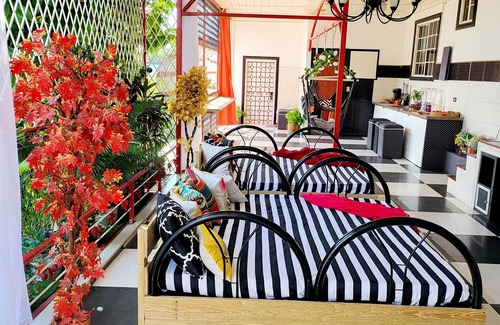 This 5-Star vacation rental is a rare find in the heart of the city. It's on a quiet street yet only 3-5 minutes walk to the major malls, restaurants, supermarkets, and nightlife. Small and large groups are welcome! THE 9 BEDROOM HOME SLEEPS 29 GUESTS in this stylish, spacious, and gated complex with walk-in kitchens, bar nook, day beds, gateman, contract cook, and daily housekeeping. This staycation is a mix of style and convenience. Come experience luxury and be super close to everything!