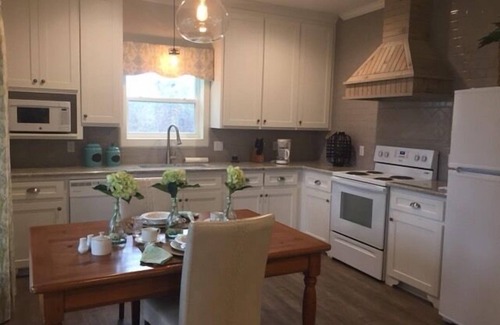 The Bent Oaks Treehouse is ready for short or long term stays: business or leisure travel, features a full kitchen, living room (sleeper couch) laundry room and master bedroom (king bed).
