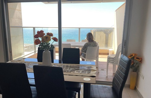 Welcome to the BEST LOCATION in Netanya's Central Beach (Sironit-Beach). Across the street from the beach elevator, and 5 minutes walk to Kikar. No need to use your car. Netanya's Best Restaurants, Shopping, Beach and Nightlife are all within 5 minutes walk. This Beautiful, Newly Built, 3 Bedroom / 2 Bath Condo is situated on the 12th floor of a brand-new building on the beach. It has a balcony that offers Beautiful Ocean and Sunset Views. Ocean View from the master Bedroom, Living Room and Kitchen. This condo can sleep 8 if using the sofa bed in the living room, it has high speed internet and cable TV with Netflix all included. The kitchen is Fully equipped with all the appliances to make your long or short stay comfortable. Inside Washer and Dryer. comes with 1 parking space inside the building, additional street parking is available nearby (for a fee). Managed by a professional management team. I am Looking Forward to hosting you in my beautiful Beach Front Condo. Location! Location! Location!