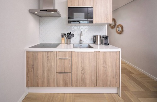 The studio is smartly designed and fully equipped. In the sleeping area, you'll enjoy a comfortable extra-long box spring bed and a TV, so you can relax even from bed. The bed is already made upon arrival – the holiday starts right away.