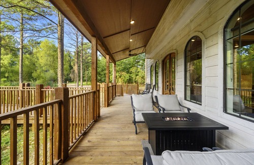 High luxury modern farmhouse retreat with a fishing pond. The pond has a healthy population of bass, blue gill and perch for catch&release fishing right off the dock or shoreline. Lilypad is walking distance to local restaurants and minutes away from the national park. Both bedrooms have balconies and en-suite bathrooms. Master bedroom has fireplace, king bed and daybed. Secondary bedroom has a twin over queen bunk bed and a twin trundle. There is a full size sofa sleeper in the living room.