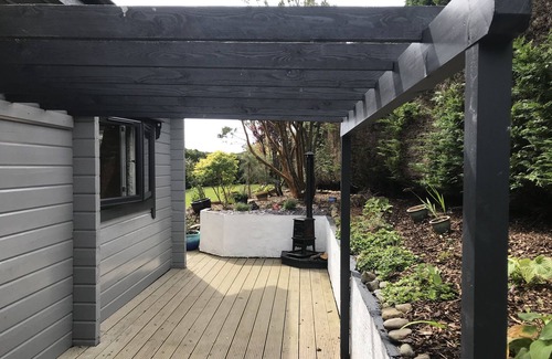 The Cabin with private garden, offers private use of outdoor hot tub for you to enjoy views of ballymorran bay and the lough.