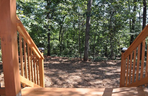 Enjoy a cup of locally roasted coffee or tea in the morning on your covered porch looking out into the woods, maybe spot a deer passing by or hear the distant sound of a train whistle and the breeze rustling through the trees.